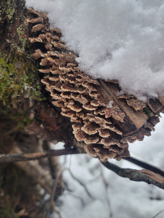 At Nor'East Apothecary we have learned the species-appropriate cultivation techniques and are proud to offer organically grown maitake, reishi, cordyceps, blue oyster, yellow oyster, pink oyster, shiitake, lions mane, and snow fungus. We wildcraft birch polypore, tinder polypore, chaga, turkey tail, red-belted polypore, and artist's conk. Our mushrooms are incorporated into powdered extract pills, tincture blends, or even facial serums!